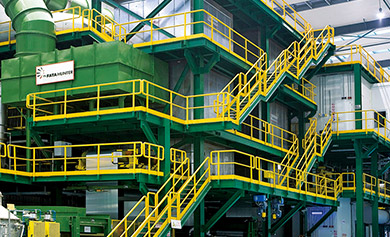 中國宏橋原鋁生產全部采用電流強度為400KA以上的大型陽極預焙電解槽。其全球首條全系列600KA特大型陽極預焙電解槽于2014年12月投產運行,具有單槽容量最大、噸鋁投資最少、液態鋁質量最好、能耗最低、生產環境最優、自動化程度最高、用工最少的優勢,在2015年6月5日通過了中國有色金屬工業協會科技成果評價,整體技術達到了國際領先水平。